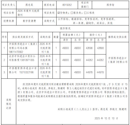 [分散采购]2026年度外文纸质期刊采购项目公示