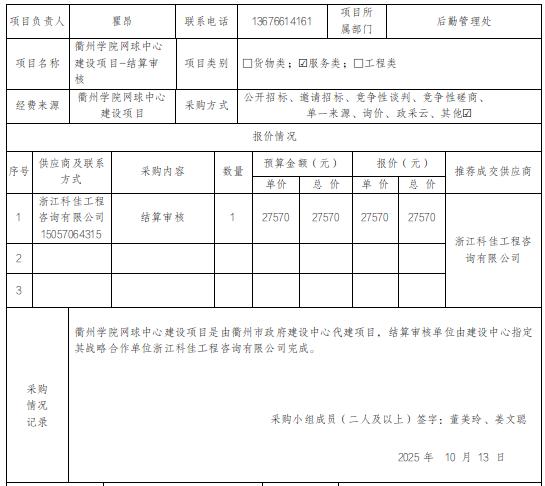 [分散采购]衢州学院网球中心建设项目结算审核服务采购项目公示