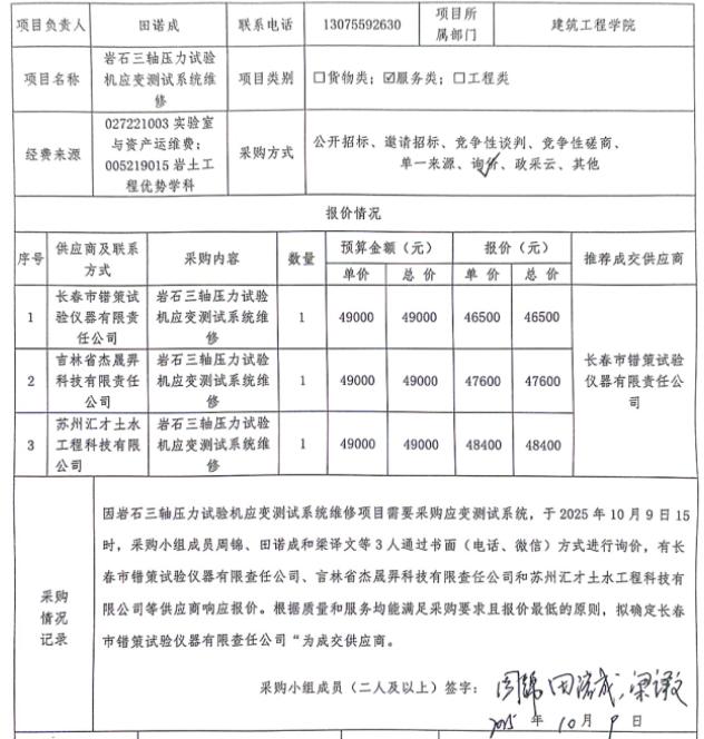 [分散采购]岩石三轴压力试验机应变测试系统维修服务采购项目公示