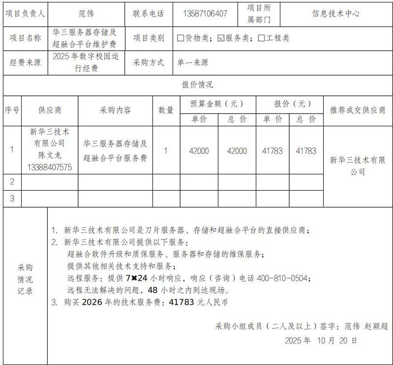 [分散采购]华三服务器存储及超融合平台服务费采购项目公示
