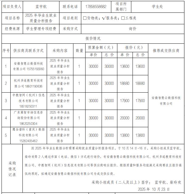 [分散采购]2025年毕业生就业质量分析报告服务采购项目公示