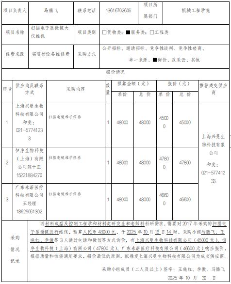 [分散采购]扫描电子显微镜大仪维保服务采购项目公示