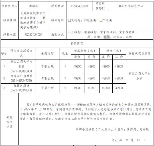 [分散采购]《美学现代性与文论话语转型——兼论地域儒学与城市美学的建构》出版服务采购项目公示