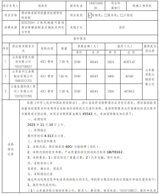 [分散采购]滑动轴承副用批量热处理原材料采购项目公示