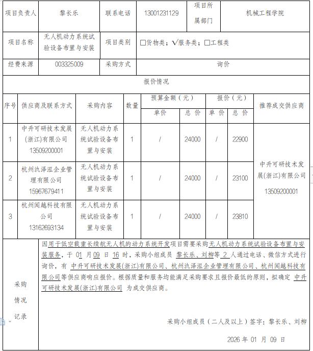 [分散采购]无人机动力系统试验设备布置与安装采购项目公示
