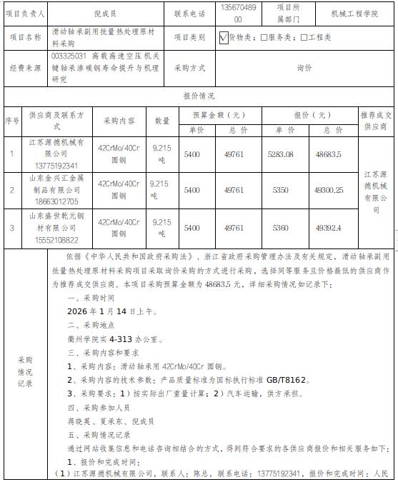 [分散采购]滑动轴承副用批量热处理原材料采购项目公示