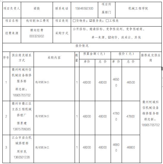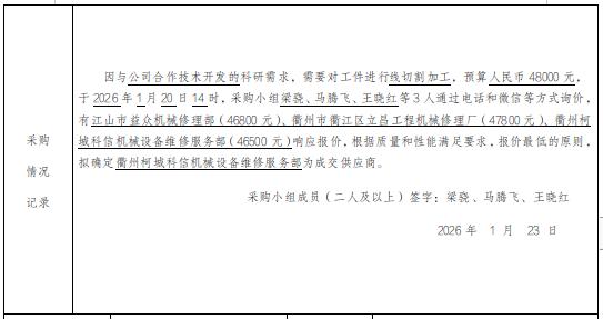 [分散采购]线切割加工服务采购项目公示