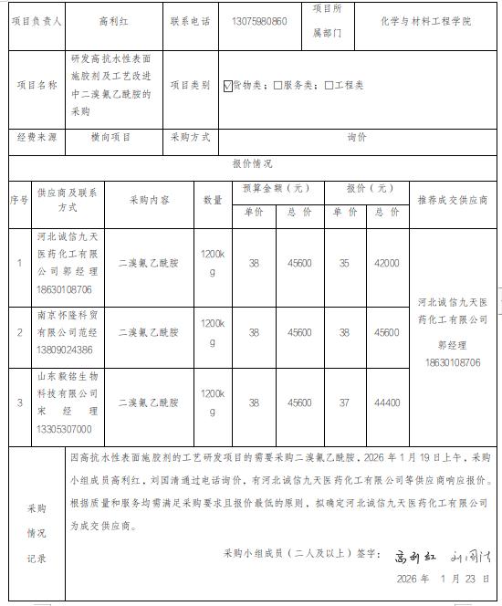 [分散采购]二溴氰乙酰胺采购项目公示