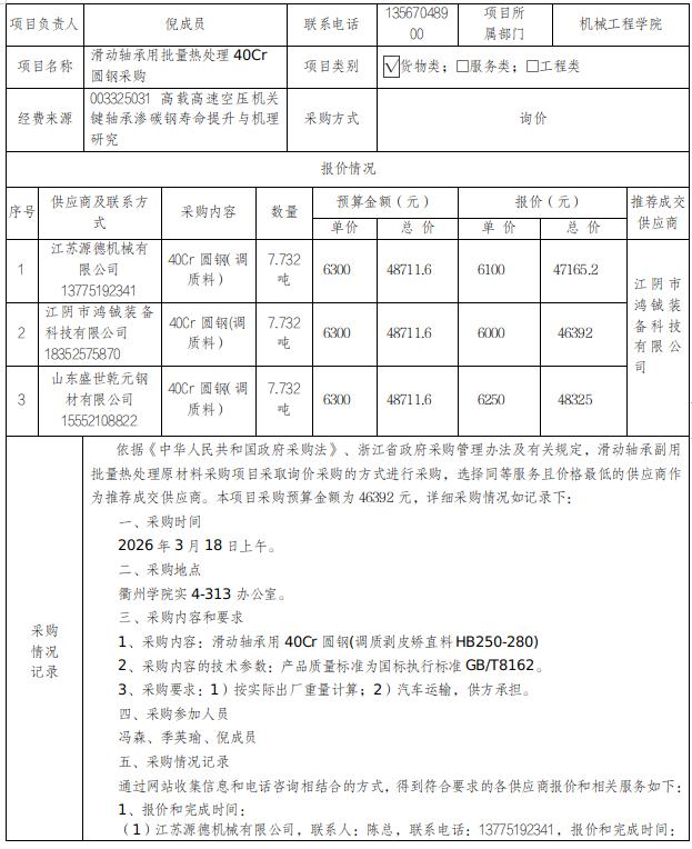 [分散采购]滑动轴承用批量热处理40Cr圆钢采购项目公示