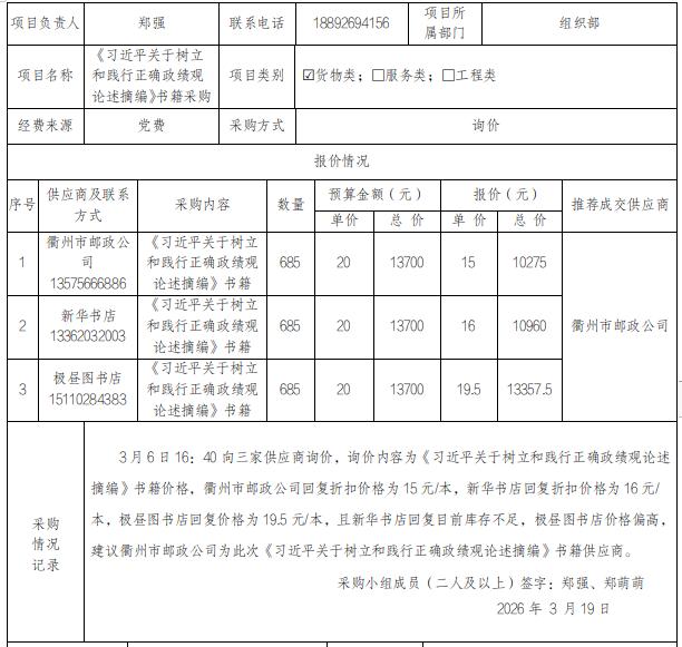 [分散采购]《习近平关于树立和践行正确政绩观论述摘编》书籍采购项目公示