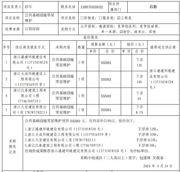 [分散采购]公共基础设施零星维护采购项目公示